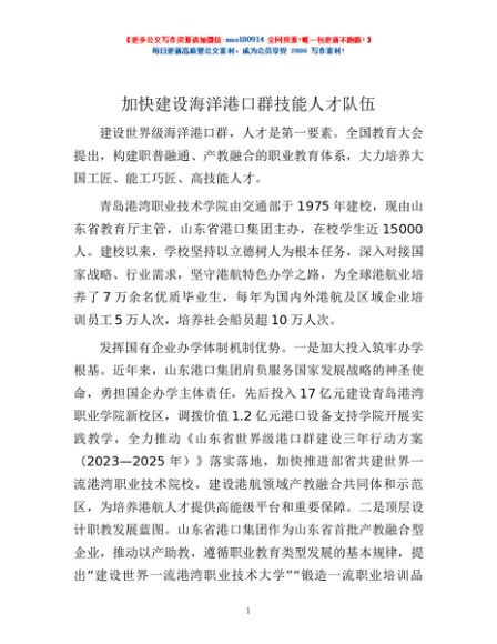 / 加快建设海洋港口群技能人才队伍