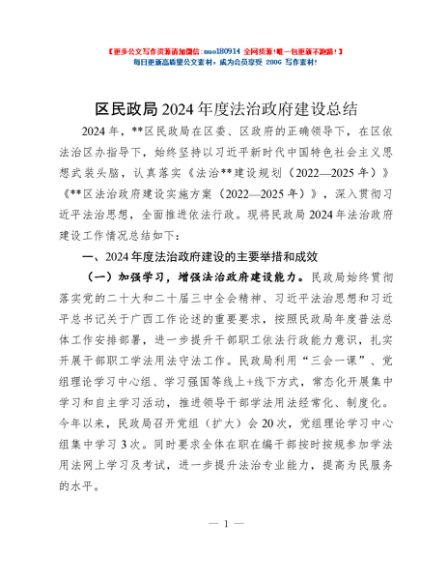 / 区民政局2024年度法治政府建设总结
