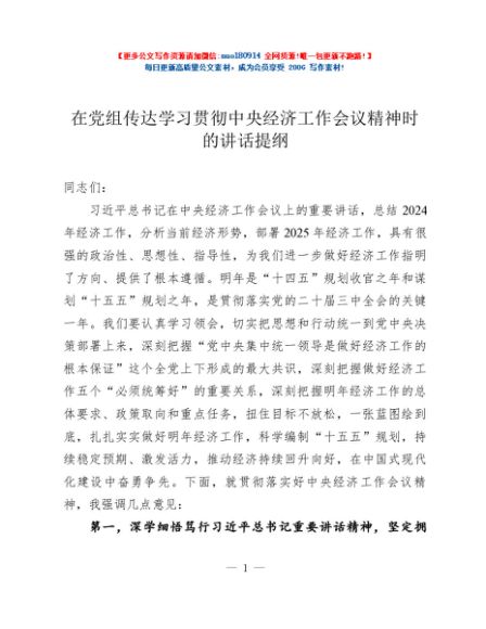 / 在党组传达学习贯彻中央经济工作会议精神时的讲话提纲