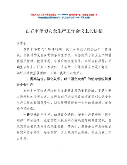 / 在岁末年初安全生产工作会议上的讲话