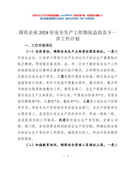 / 国有企业2024年安全生产工作情况总结及下一步工作计划