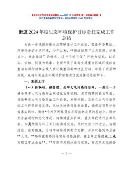 / 街道2024年度生态环境保护目标责任完成工作总结