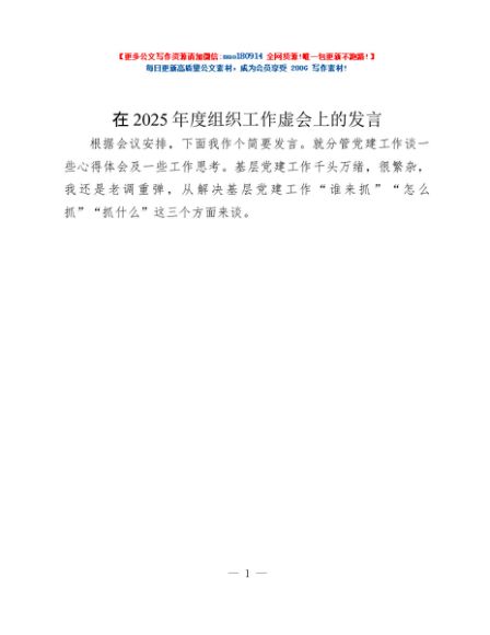 / 在2025年度组织工作虚会上的发言