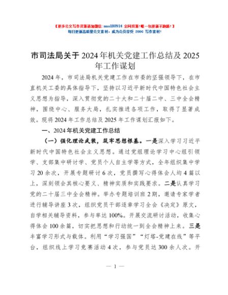 / 市司法局关于2024年机关党建工作总结及2025年工作谋划