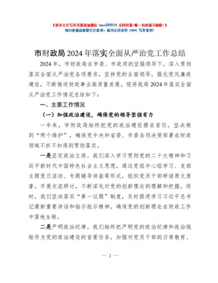 / 市财政局2024年落实全面从严治党工作总结