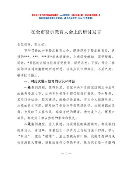 / 在全市警示教育大会上的研讨发言