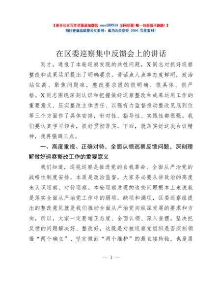 / 在区委巡察集中反馈会上的讲话