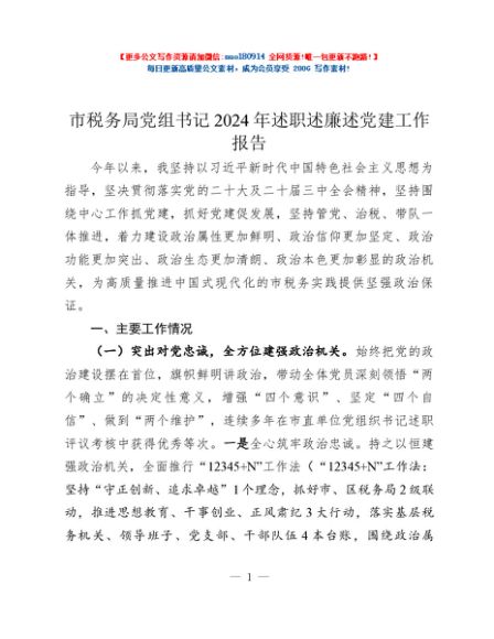/ 市税务局党组书记2024年述职述廉述党建工作报告