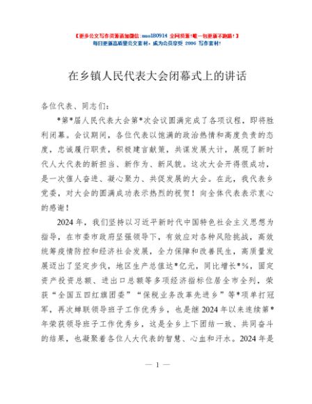 / 在乡镇人民代表大会闭幕式上的讲话