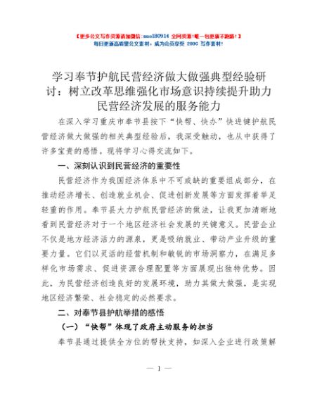 学习奉节护航民营经济做大做强典型经验研讨:树立改革思维强化市场意识 持续提升助力民营经济发展的服务能力