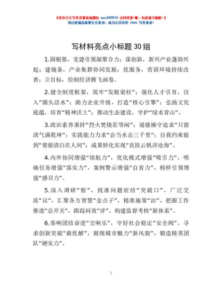 / 写材料亮点小标题30组