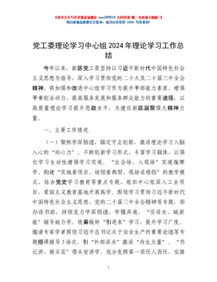 / 党工委理论学习中心组2024年理论学习工作总结
