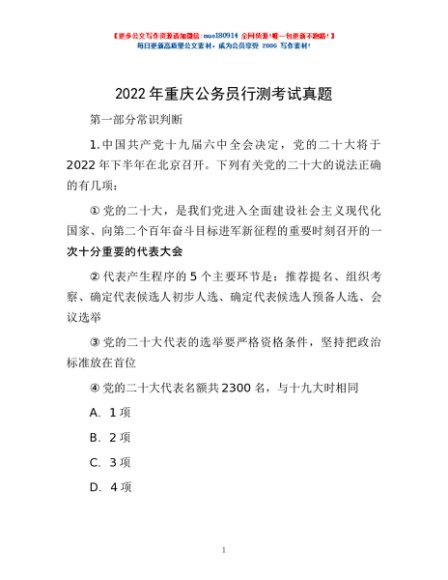 / 2022年重庆公务员行测考试真题