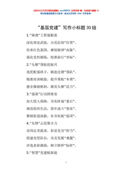/ “基层党建”写作小标题30组