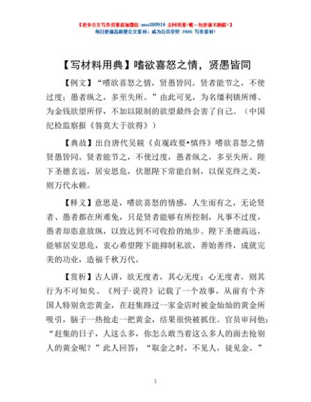 【写材料用典】嗜欲喜怒之情,贤愚皆同
