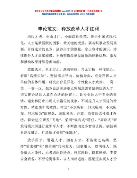 / 申论范文:释放改革人才红利