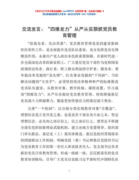 / 交流发言:“四维发力”从严从实狠抓党员教育管理