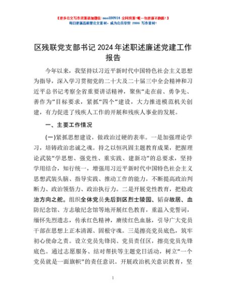 / 区残联党支部书记2024年述职述廉述党建工作报告