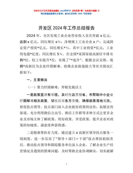 / 开发区2024年工作总结报告