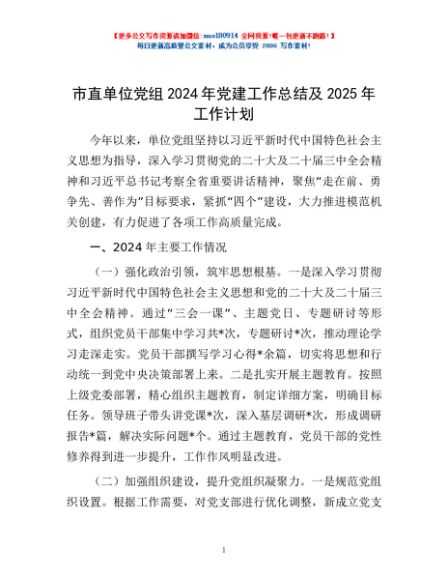 / 市直单位党组2024年党建工作总结及2025年工作计划