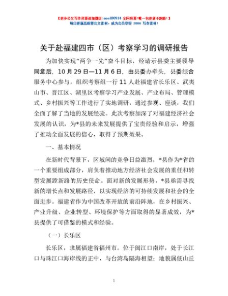 关于赴福建四市(区)考察学习的调研报告