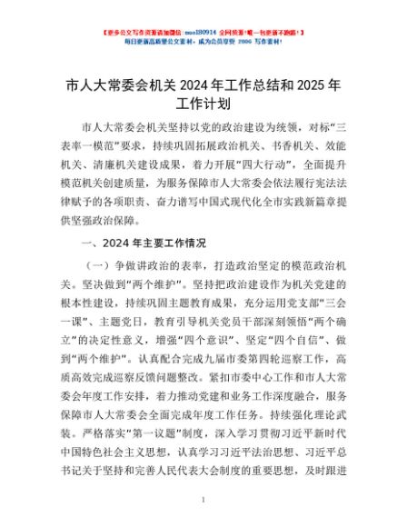 / 市人大常委会机关2024年工作总结和2025年工作计划