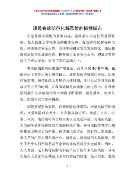 / 建设有效防范化解风险的韧性城市