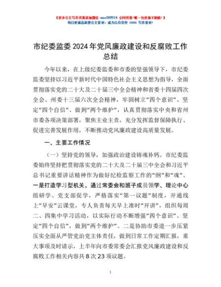 / 市纪委监委2024年党风廉政建设和反腐败工作总结