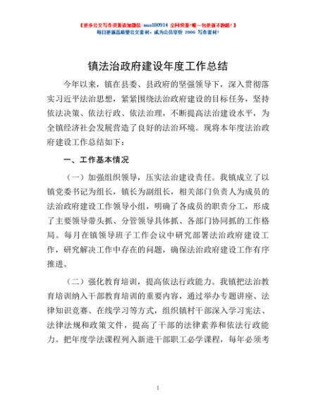 / 镇法治政府建设年度工作总结