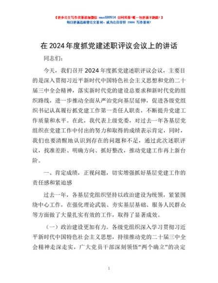 / 在2024年度抓党建述职评议会议上的讲话