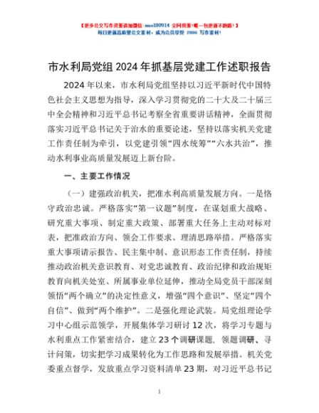 / 市水利局党组2024年抓基层党建工作述职报告
