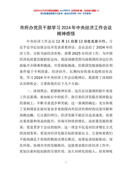 市府办党员干部学习2024年中央经济工作会议精神感悟