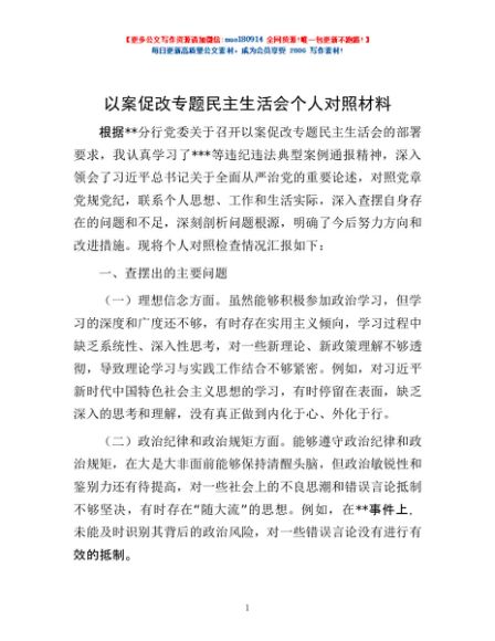 以案促改专题民主生活会个人对照材料