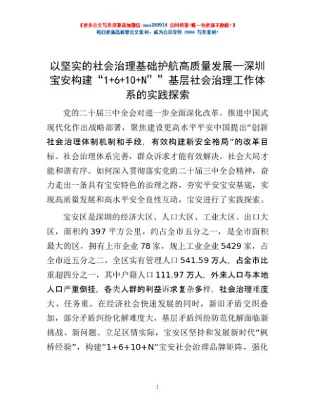 / 以坚实的社会治理基础护航高质量发展—深圳宝安构建“1+6+10+N””基层社会治理工作体系的实践探索
