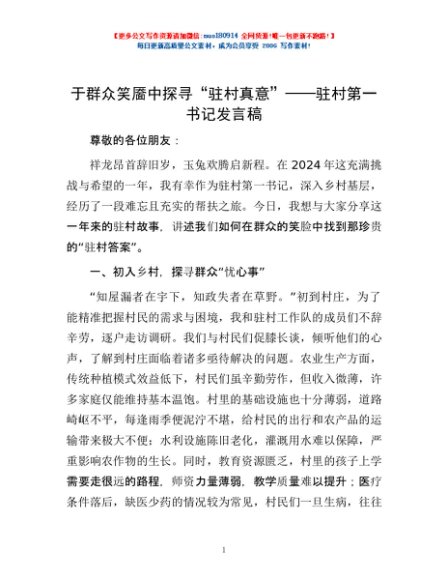 / 于群众笑靥中探寻“驻村真意”——驻村第一书记发言稿