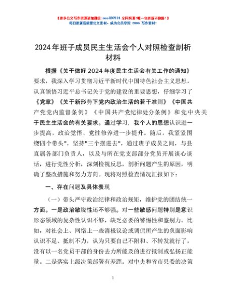 / 2024年班子成员民主生活会个人对照检查剖析材料