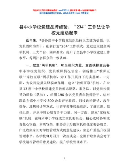/ 县中小学校党建品牌经验:“234”工作法让学校党建活起来