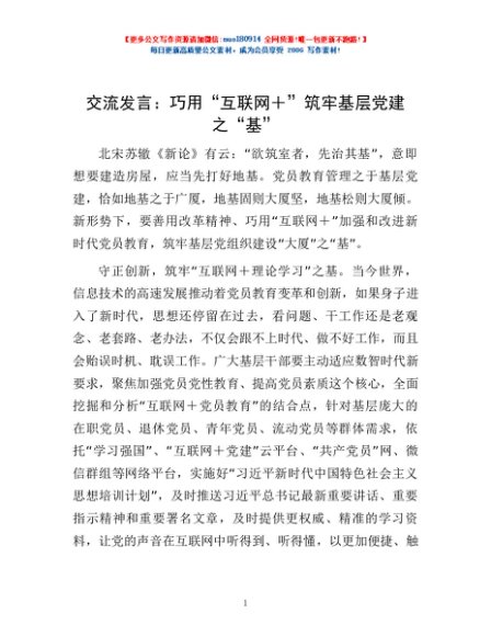 / 交流发言:巧用“互联网+”筑牢基层党建之“基”