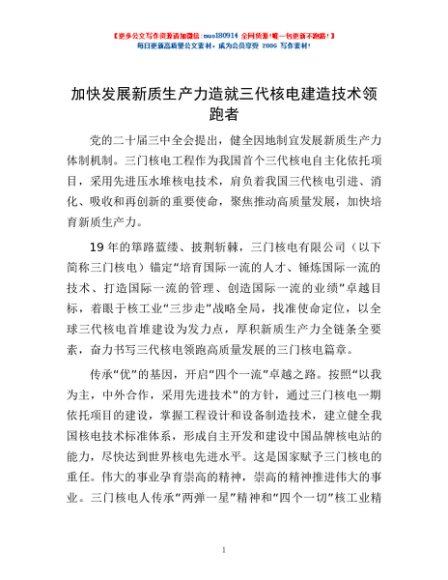 加快发展新质生产力造就三代核电建造技术领跑者