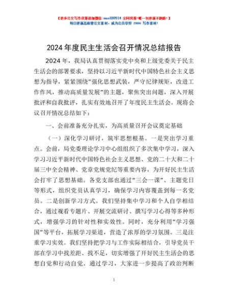 / 2024年度民主生活会召开情况总结报告