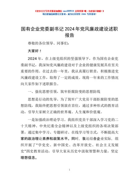 / 国有企业党委副书记2024年党风廉政建设述职报告