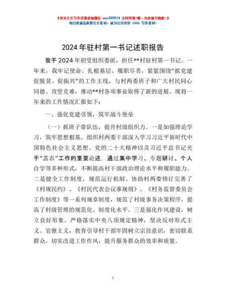 2024年驻村第一书记述职报告