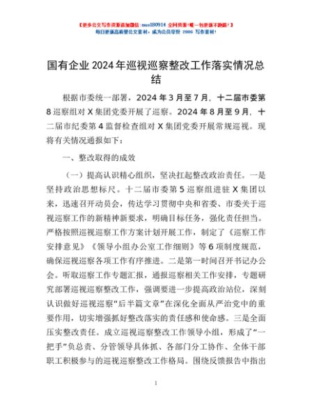 / 国有企业2024年巡视巡察整改工作落实情况总结