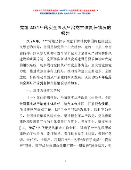 / 党组2024年落实全面从严治党主体责任情况的报告