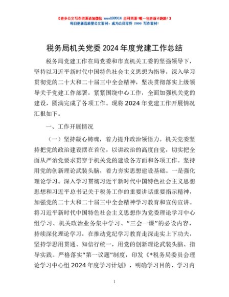 / 税务局机关党委2024年度党建工作总结
