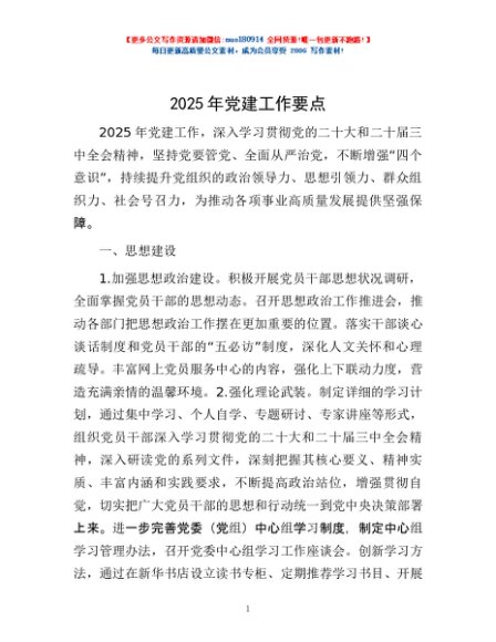 / 2025年党建工作要点