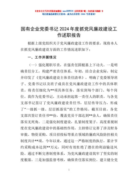 / 国有企业党委书记2024年度抓党风廉政建设工作述职报告