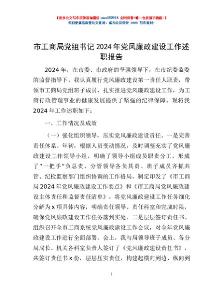 / 市工商局党组书记2024年党风廉政建设工作述职报告