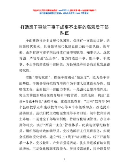 / 打造想干事能干事干成事不出事的高素质干部队伍