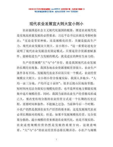 现代农业发展宜大则大宜小则小